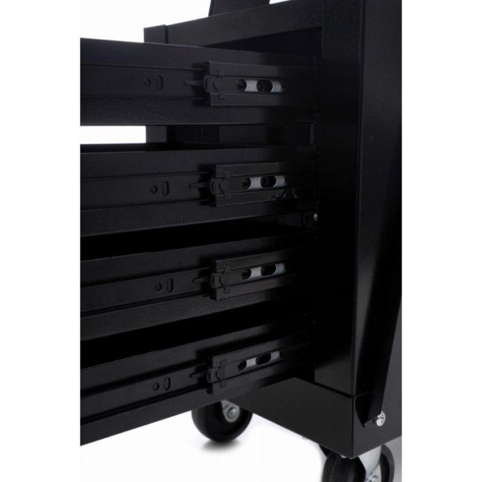 Kolica imaju duguljastu gornju policu i 4 ladice. Čvrsta i Izdržljiva konstrukcija od čelika najviše kvalitete čini kolica nosivosti do 75 kg. Veći kotači straga i manji sprijeda daju nam lakoću manevriranja čak i pri velikom opterećenju.