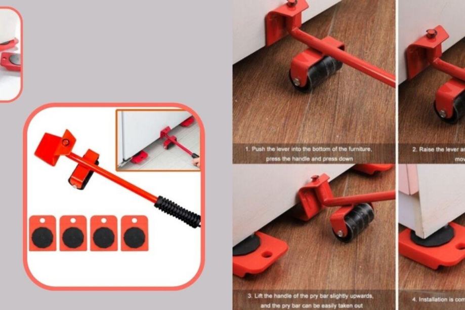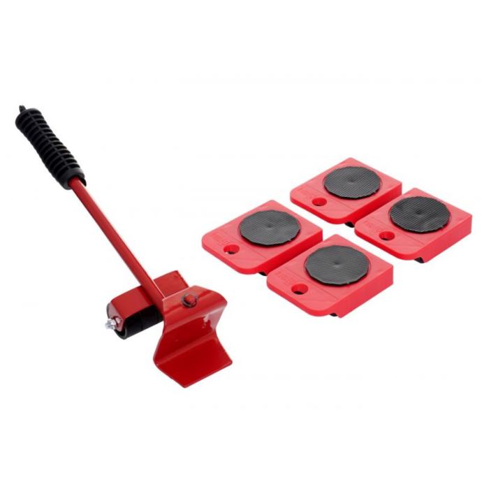 Set uključuje čeličnu polugu koja olakšava podizanje namještaja kako bi se transportni valjci mogli uvući ispod njega.