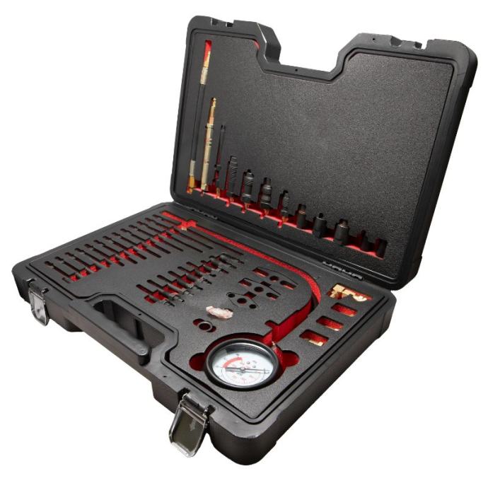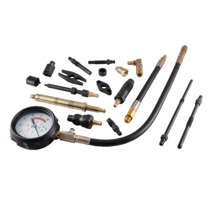 Jedna od istaknutih značajki ovog kompleta je širok raspon adaptera za svjećice/žarilice i injektore. Ovi adapteri služe za širok izbor motora koji se nalaze u modernim automobilima, kombijima, kamionima, autobusima, poljoprivrednim i pomorskim vozilima.Kako bi se prilagodile različite veličine svjećica, komplet uključuje adaptere za svjećice od 10 mm, 12 mm, 14 mm i 18 mm. To osigurava kompatibilnost s većinom svjećica koje se obično koriste u benzinskim motorima.Korištenjem ovog glavnog kompleta za ispitivanje kompresije možete točno procijeniti razine kompresije benzinskih i dizelskih motora, što vam omogućuje dijagnosticiranje potencijalnih problema i donošenje informiranih odluka o potrebnim popravcima ili održavanju.Bez obzira jeste li profesionalni mehaničar ili strastveni zaljubljenik u automobile, komplet za ispitivanje kompresije za dizel i benzin pruža vam sve potrebne alate i adaptere za pouzdano izvođenje testova kompresije na širokom rasponu vozila, osiguravajući učinkovitu i točnu dijagnostiku.Tehnički podaci:Manometar od 600 psiS velikim gumenim branikomRavno i pravokutno brzo spajanjeŠirok raspon adaptera za svjećice/žarilice i injektoreOvaj komplet pokriva većinu modernih automobila, kombija, kamiona, autobusa, poljoprivrednih i brodskih motoraVeličine svjećica: 10, 12, 14, 18 mm]]>