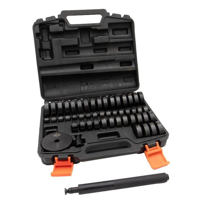 Komplet uključuje razne umetke za zaključavanje za utiskivanje ležajeva na mjesto ili njihovo uklanjanje s mjesta ugradnje. Korištenje ispravne veličine i vrste montažne ploče je važno kako bi se osiguralo da su ležajevi ispravno instalirani i da ostanu sigurno na mjestu. Ovaj kit čini postavljanje i uklanjanje ležajeva lakšim i učinkovitijim.Tehnički podaci:Veličina ploče: 18-65 mm s koracima od 1 mm i 74 mm]]>