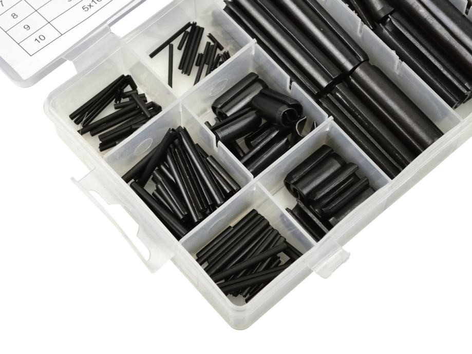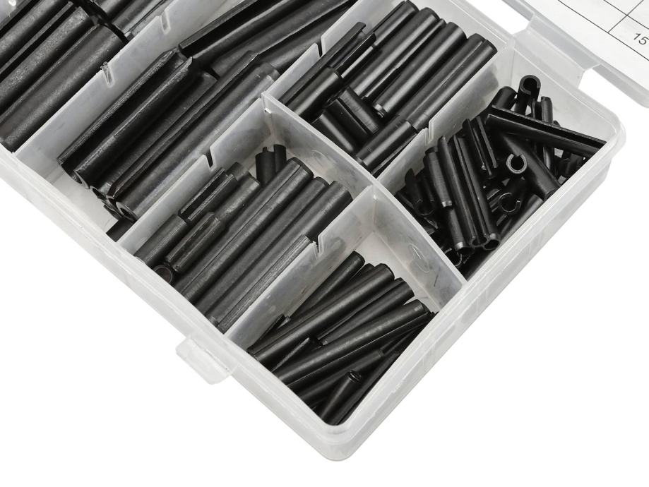 Set ojačanih klinova s oprugom. Set se sastoji od 315 klinova dimenzija od 1,5x5mm do 10x50mm, izrađenih od opružnog čelika. Cijeli set je smješten u praktično plastično pakiranje tipa sorter.