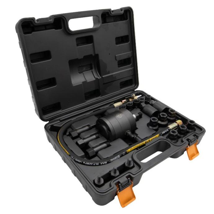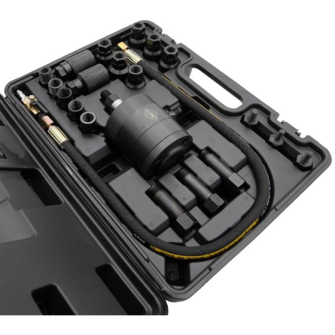 Mlaznice su kritične komponente u sustavima za ubrizgavanje goriva, a njihovo uklanjanje može biti izazovan zadatak. Pneumatski izvlakač u ovom setu dizajniran je za pružanje potrebne snage i preciznosti za sigurno i učinkovito uklanjanje mlaznica iz njihovih točaka ugradnje. Koristi komprimirani zrak za stvaranje sile potrebne za izvlačenje.Naljepnice u boji uključene u set mogu se koristiti za označavanje različitih komponenti ili dodataka. To pomaže u brzoj identifikaciji i organizaciji, olakšavajući lociranje potrebnih alata tijekom upotrebe.]]>
