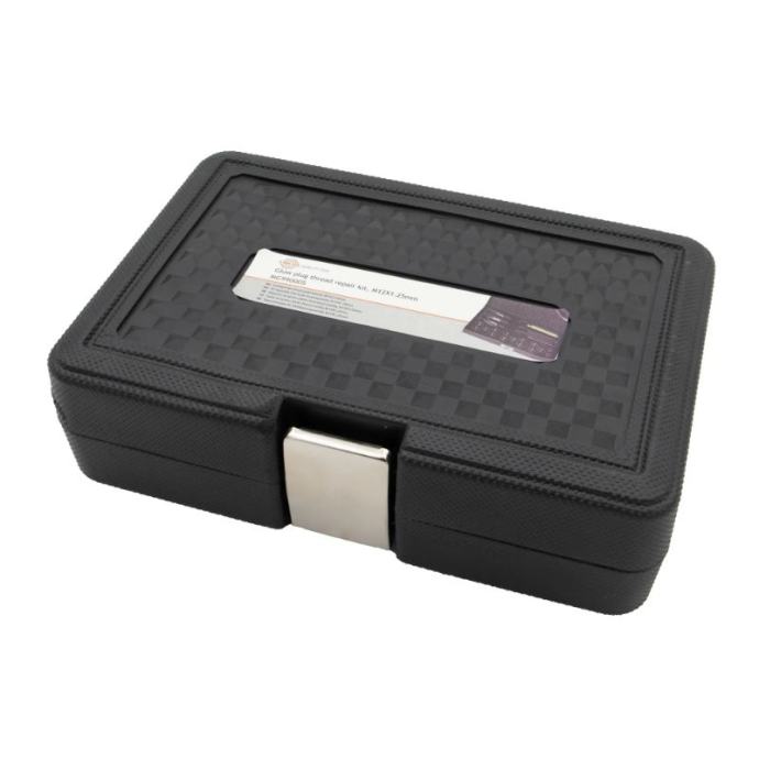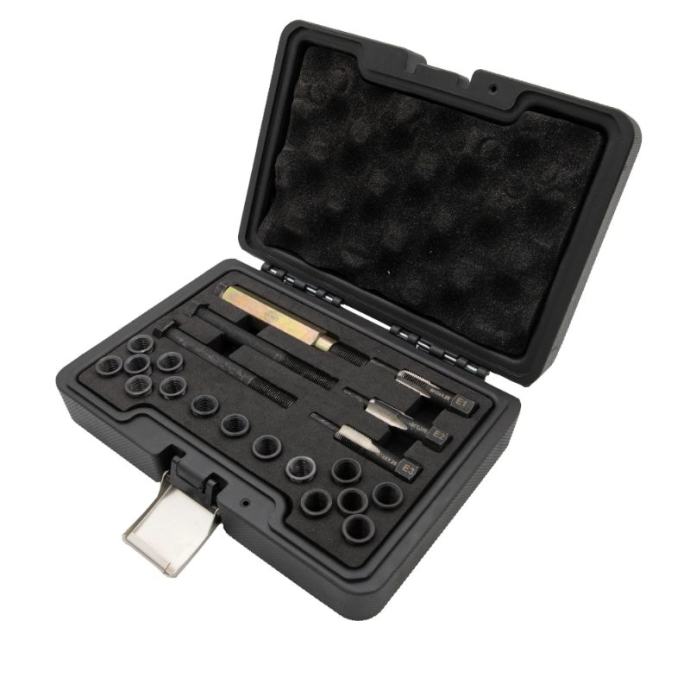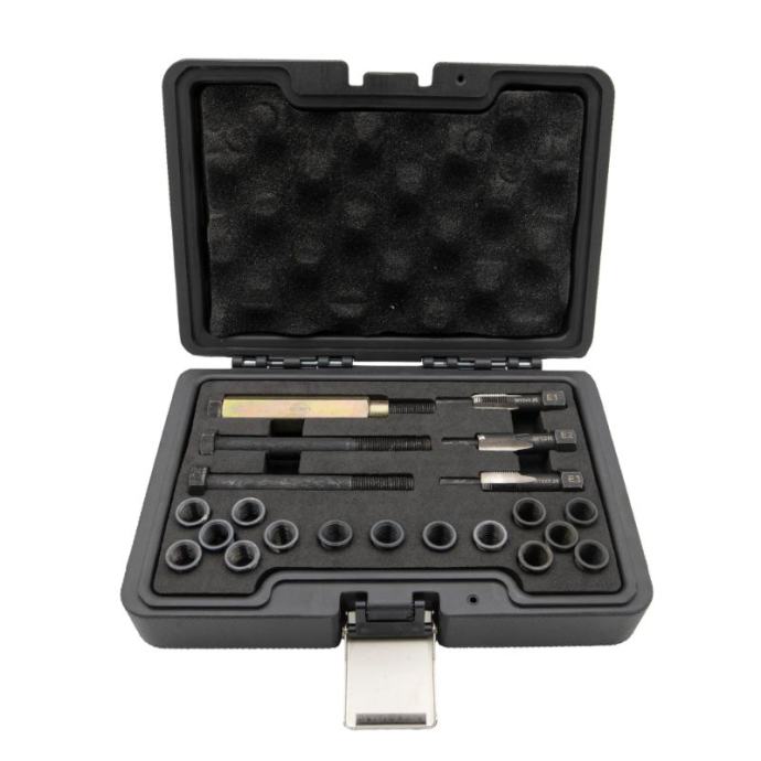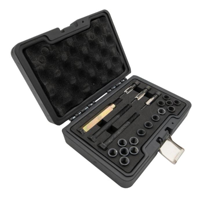 Komplet za popravak navoja žarnica, M12 x 1,25, dizajniran je za čvrsto i nepropusno brtvljenje, što ga čini osnovnim alatom za popravak navoja žarnica. Ovaj sveobuhvatni komplet omogućuje brze i učinkovite popravke, eliminirajući potrebu za skupim zamjenama kućišta ležaja i drugih komponenti. Savršen je za sve koji trebaju pouzdano rješenje za probleme s navojem žarnice.Komplet uključujeE1 M12x1.25, E3 M14x1.25 navojni umetciE2 M13R Razvrtala i alati za montažu5 komada umetaka za navoje od 12 mm, 19 mm i 26 mm za svestranu upotrebuBilo da imate posla s oštećenim navojima ili osiguravate sigurno prianjanje, ovaj komplet za popravak nudi praktično i isplativo rješenje.]]>