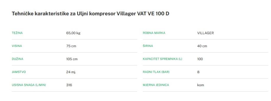 Prodajem kompresor od 100 litara Villager VAT VE 100 D
