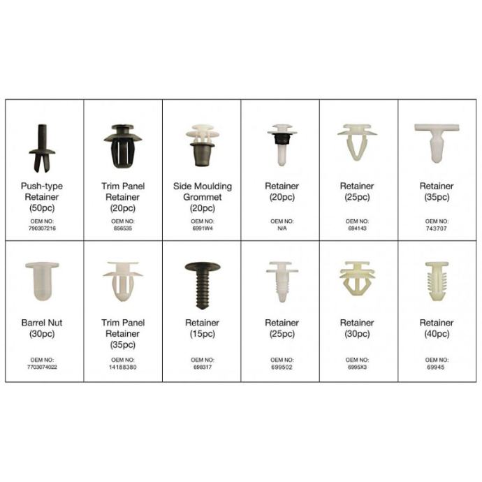 Imamo širok izbor posebnih kopči za presvlake ili drugih posebnih kopči za montažu za kontrolnu ploču, unutrašnjost, motorni prostor ili prtljažni prostor.stezaljke za stablo, samorezni vijak, stezaljka za presvlake, stezaljka za vrata, stezaljka za vrata prtljažnika, stezaljka prednjeg poklopca, stezaljka poklopca motora, stezaljka motornog prostora, pokrovna kapa, stezaljka obloge, stezaljka obloge, stezaljka sajle, ekspanzijska zakovica, brza matica, potisna zakovica, pričvrsna kopča, vijčana zakovica, potisna zakovica, plastična zakovica, plastični čavao, kopča za kabel, stezaljka za kabel, rešetka, rešetka, kopča za rešetku, kopča za zaključavanje, stezaljka za zaključavanje, kopča za montažu, kopča za montažu, zatik za zaključavanje, zatik za zaključavanje, plastična matica, plastika vijak, zakovica, zakovica, slijepa zakovica, ekspanziona matica, ekspanziona stezaljka, kabel, stezaljka kabela, stezaljka kabela, 6 strana, 6 strana, maticaIsporučuje se kao standard30x plastična ukrasna matica, ekvivalent Renault OE 7703074022, Mercedes OE A10898002750x kopča za dugme, odgovara Volvo OE 947098, Mercedes OE A0009903492, Peugeot OE 79030721620x kopča za presvlake, odgovara Peugoet & Citroen OE 85653520x obrubna kopča, odgovara Audi OE 357853575, Peugeot OE 6991W415x plug in clip, odgovara Peugoet & Citroen OE 69831720x spajalica, pogodna za univerzalnu upotrebu Citroen25x spojna obujmica, odgovara Peugoet & Citroen OE 69414335x spojna obujmica, odgovara Peugoet OE 74370725x presvlake, odgovara Peugeot OE 69950230x presvlake, odgovara Peugeot OE 6995X340x presvlake, odgovara Peugeot OE 6994535x plug in clip, odgovara Fiat OE 14188380, Renault OE 7703077059]]>