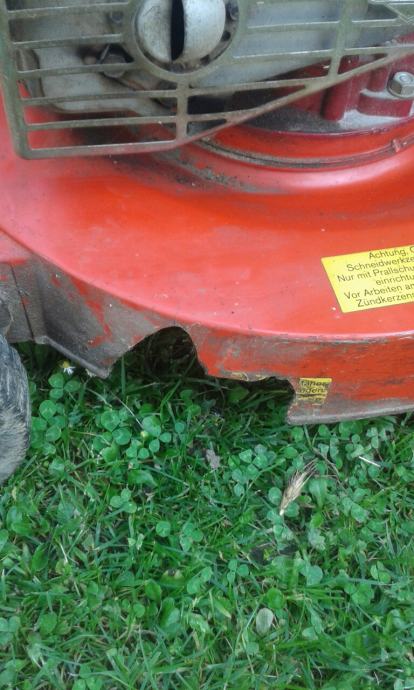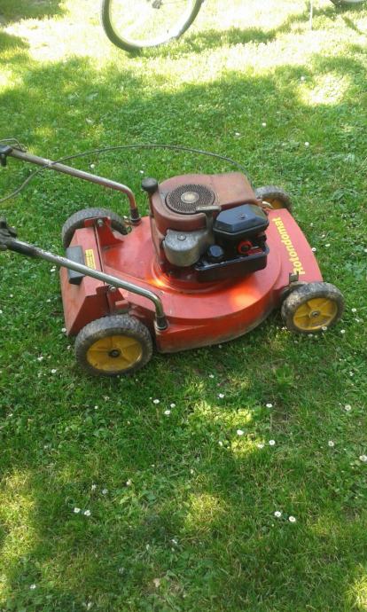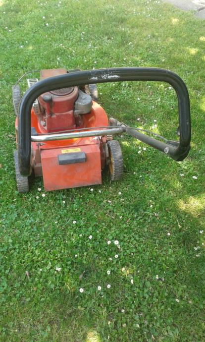 Motorna kosilica kvalitetne izrade. Masivno alu kuciste sa malim ostecenjem vidljivo na slici. Kosilica kada se pali prvi put mora se u frgazer natočiti malo goriva jel je neispravna pumpica za gorivo. Kad je topla pali od prve bez toga.