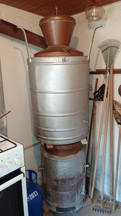 Prodajem kotao za rakiju,60 l ,bakreni, malo rabljeni, u odličnom stanju (800 €). Sastoji se od ložišta (plinski plamenik je opcija (20 €)), kape za kotao, cijevi za povezivanje kape i hladnjaka (s dihtunzima), hladnjaka, Ložište je dodatno izolirano šamotom. Kotao je čitavo vrijeme bio/je ,u zatvorenoj i suhoj prostoriji.