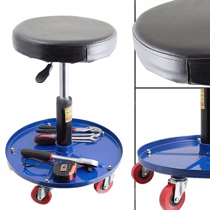 Ako cijenite praktičnost i utjehu na poslu, pronašli ste nešto za sebe. Stolica radionice s pneumatskom podešavanjem visine u rasponu od 400-500 mm. Eko kožno sjedalo. U bazi su alat i dodaci potrebni na poslu. Radionica je korisna u svim vrstama radionica, servisnih stanica i garaža. Rotacijsko sjedalo omogućuje korisniku da ima ugodan položaj tijekom rada, pet rotacijskih cilindara povećava pokretljivost tijekom rada. Čvrsta konstrukcija omogućuje opterećenje do 135 kg i razlikuje se po njegovom atraktivnom omjeru. Učitavanje: oko 135 kg, max. Visina: oko 50 cm, minimalna visina: oko 40 cm, sjedalo tapecirano s eko kožnim materijalom Okvir: metalni / čelični lim, težina: 5,4 kg