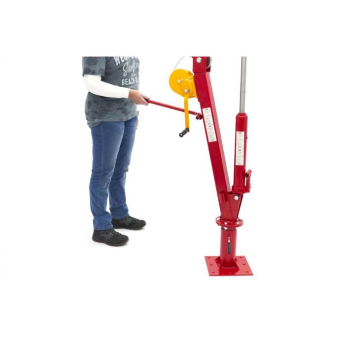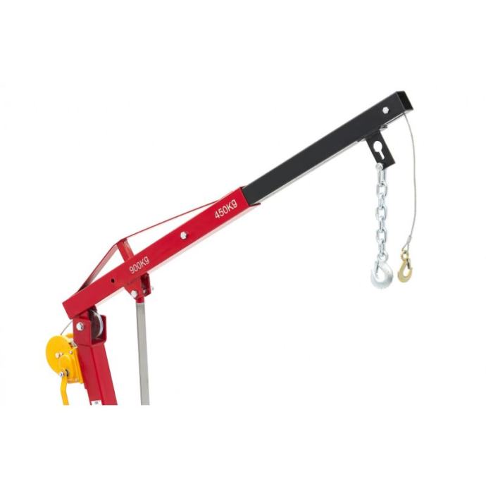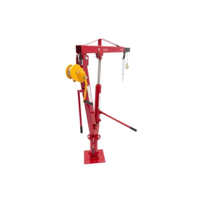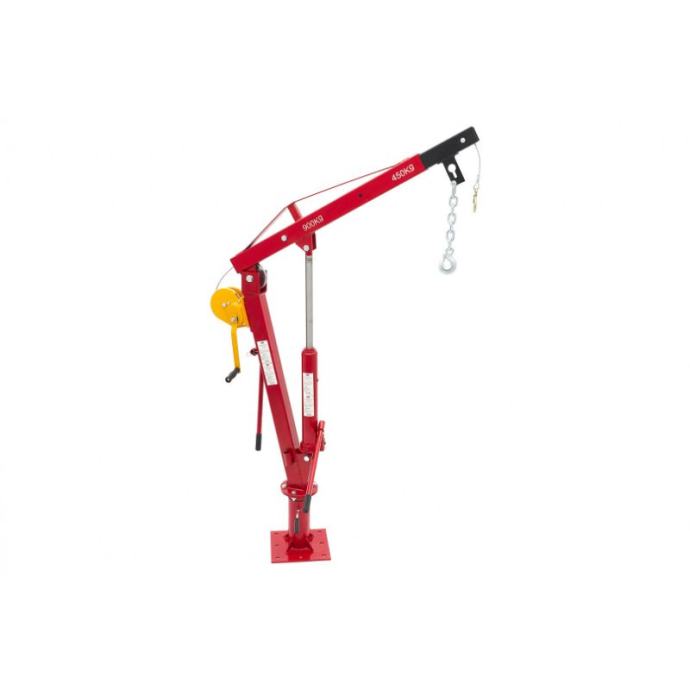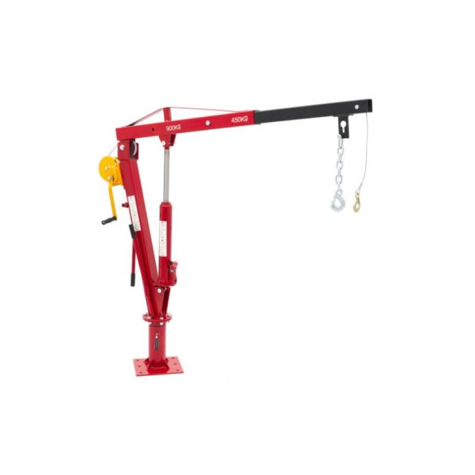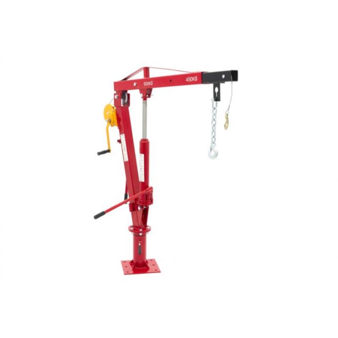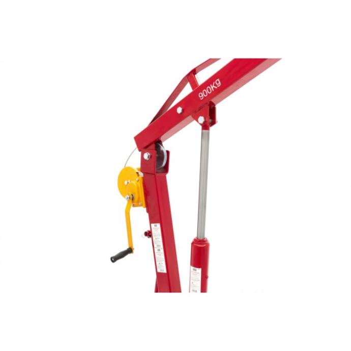 doseg ruku vodoravno mjereno od sredine stopalaopremljen lancem i vitlomhidraulična verzijaTehnčki opis: kapacitet 900 kgminimalna visina 150 mmmaksimalna visina 2440 mmdoseg ruke 760 mm s opterećenjem do 900 kgdoseg ruke 1130 mm s opterećenjem do 450 kgnoga je rotirajuća za 360 stupnjevadimenzije podnožja 270 x 270 mmtežina 38 kg]]>