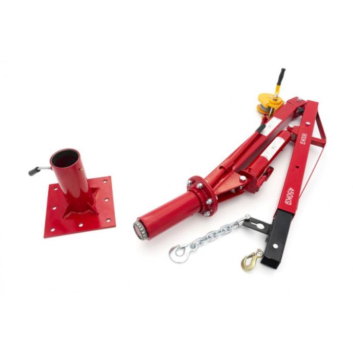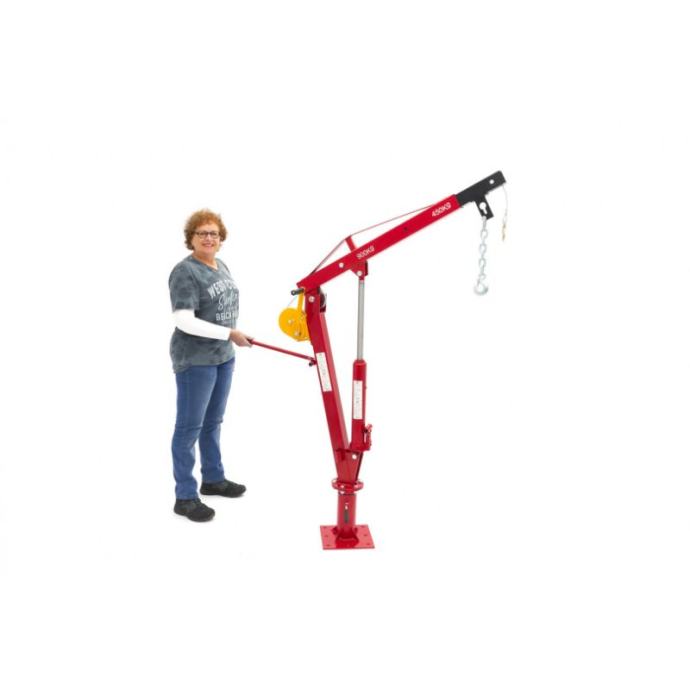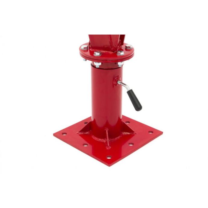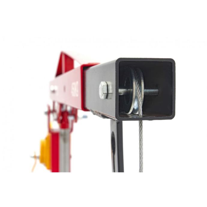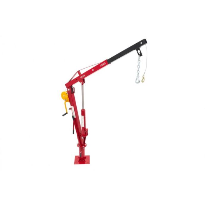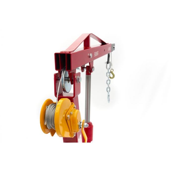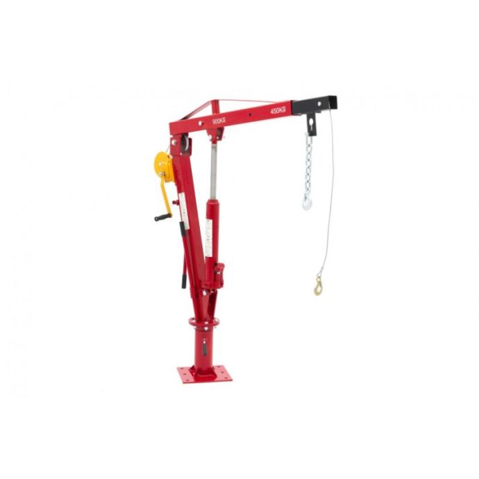 doseg ruku vodoravno mjereno od sredine stopalaopremljen lancem i vitlomhidraulična verzijaTehnčki opis: kapacitet 900 kgminimalna visina 150 mmmaksimalna visina 2440 mmdoseg ruke 760 mm s opterećenjem do 900 kgdoseg ruke 1130 mm s opterećenjem do 450 kgnoga je rotirajuća za 360 stupnjevadimenzije podnožja 270 x 270 mmtežina 38 kg]]>
