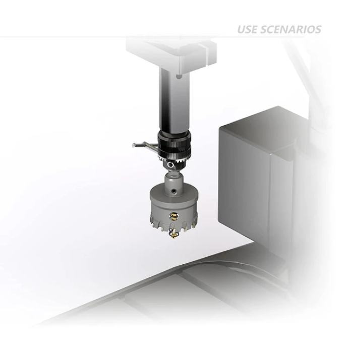 Napomena: Kod bušenja metala krunama karbidnog tipa, hlađenje, odnosno podmazivanje oštrica je preporučljivo kako bi osigurali dug radni vijek alata. Preporučamo hladiti krunske pile reznim uljem u spreju kod lakše obradivih materijala tanje stijenke, a konstantnim polijevanjem kod bušenja zahtjevnijih materijala deblje stijenke.