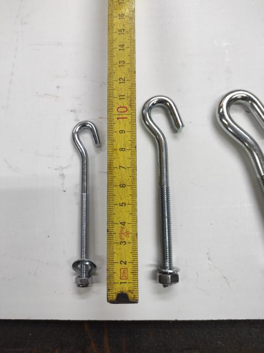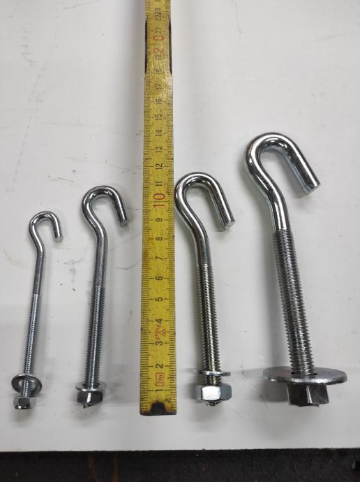 Prodajem kukice m6 - m12, izuzetno snažne, rađene od svijetlo vučenog željeza, a navoj je valjani, za razne namjene tipa učvrščivanja drvenih stupova, učvrščivanja raznih kabela, vješanje teglina, vjesanje zvučnika i razne rasvjete itd... dolazi sa podložnom pločicom i maticom, šaljem poštom, veća količina, cijena je za komad