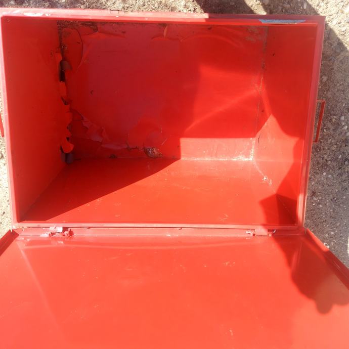 Kutija nije nova plastificacija je pocela ljustit kutija je bila na sanduku manji kamion za alat