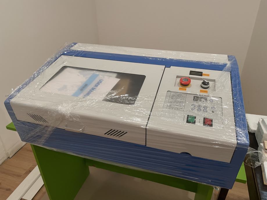 Laser mašina 40 W - NOVO - vodeno hlađenje. Mogućnost graviranja na staklo, plastiku, papir, drvo, karton, plexi, kožu. Radna površina 30 x 20 cm
