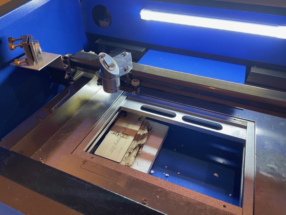 Laser mašina 40W, CO2, mogućnost graviranja na drvo, staklo, plastiku, karton, papir, koža, razne tkanine. Vodeno hlađenje. Star 6 mjeseci.