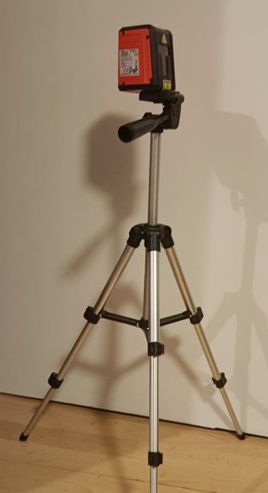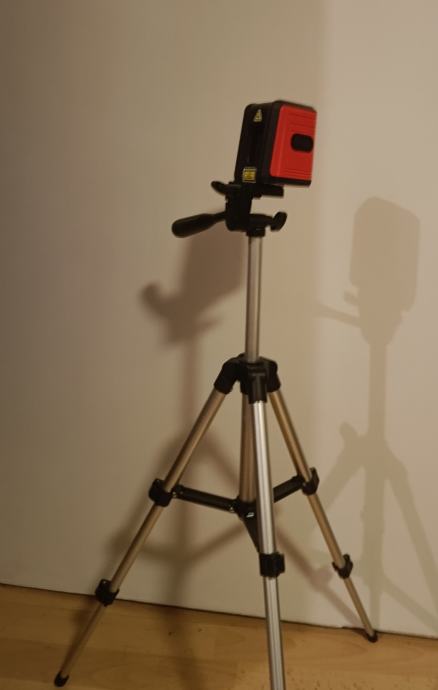 Laserski nivelir, kupljen u Kauflandu, model sličan parksideovom, sa stativom.