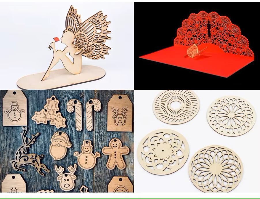 Predmeti za rezanje: karton, netkana tkanina, svijetlo drvo, akrilni materijal, tanka plastična ploča