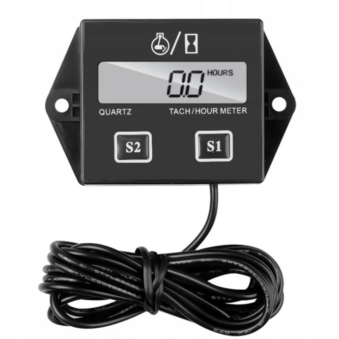 Specifikacija- mjerna površina: 9999,9 h; Preciznost mjerenja: 0,1 h; vodootporan; otporan na udarce; Maksimum Radna temperatura: 85 ° C; za sva 2 i 4 klipna motora s unutarnjim izgaranjem; Dimenzije: 7,5 x 4,5 x 2 cm; Duljina kabela: 185 cm; Težina: 53 g; Težina u paketu: 69G.