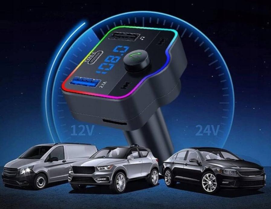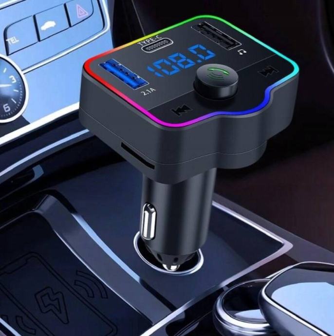 LED RGB auto FM transmiter MP3 bluetooth 5.0 i punjač 2x USB 3.0 12-24V