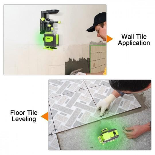 Ovaj 360 ° križni laserski alat idealan je za asfaltiranje podnih pločica, postavljanje stropova, vrata, prozora ili stolarije namještaja, viseće pozadine, itd.