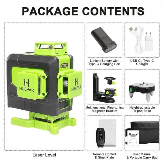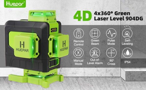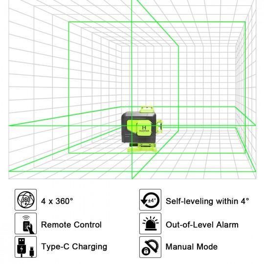 Huar 4x360 ° zeleni laser Nivelir 904DG nudi rješenje za izravnavanje i poravnavanje svih u jednom za postavljanje jedne osobe.