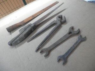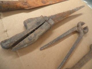 Dvije stare pile, dva stara ključa i stara kovačka kliješta