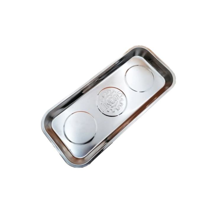 Štiti male matice, vijke, metalne dijelove i alate od gubitka dok radite, zahvaljujući ugrađenim magnetima. Ova magnetska posuda s vijcima izrađena je od pouzdanog, čvrstog i snažnog nehrđajućeg čelika koji je otporan na koroziju i nije ga lako slomiti ili deformirati. ,Stoga ima dugotrajno vrijeme upotrebe. Moći ćete montirati pladanj vodoravno, okomito ili čak naopako na haube, bokobrane ili bilo koju drugu površinu od željeznog metala dok radite.Tehnički podaci:Veličina: 160(š)×360(d)mm (6-1/4"×14-1/4"), dubina: 30mm (1-3/16")Materijal: čvrsti nehrđajući čelik (430/2B 0,5 mm)Promjer magneta: 80 mm (3-1/4") × 3 komSila: 1000-1200 gausaPVC dno sprječava grebanje]]>