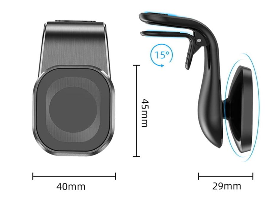 Univerzalni nosač automobila za ventilacijsku rešetku idealan je za ugradnju u svaki automobil. Telefon možete instalirati okomito i vodoravno. Snažni magneti pobrinite se da telefon ostane stabilan tijekom vožnje.