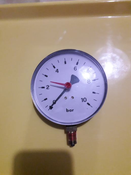 Manometar od 0-10 bar priključak 1/4" fi manometra 100 mm NOVI 30,00 eura.