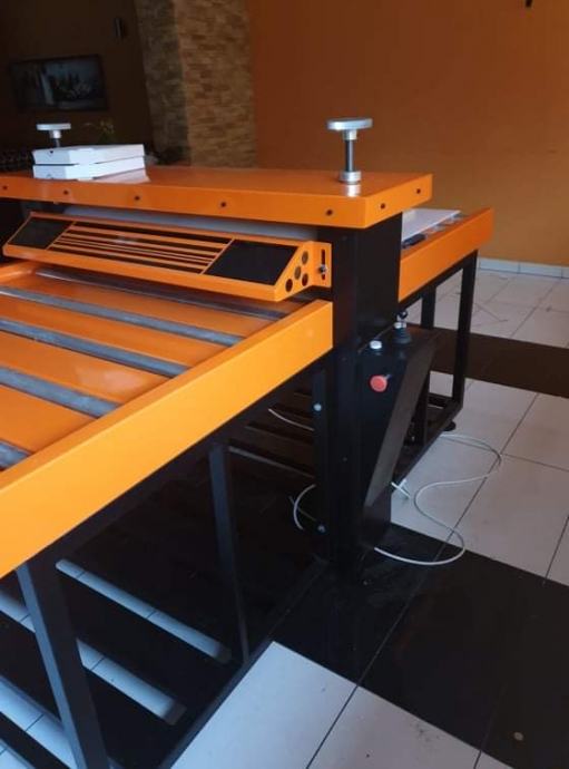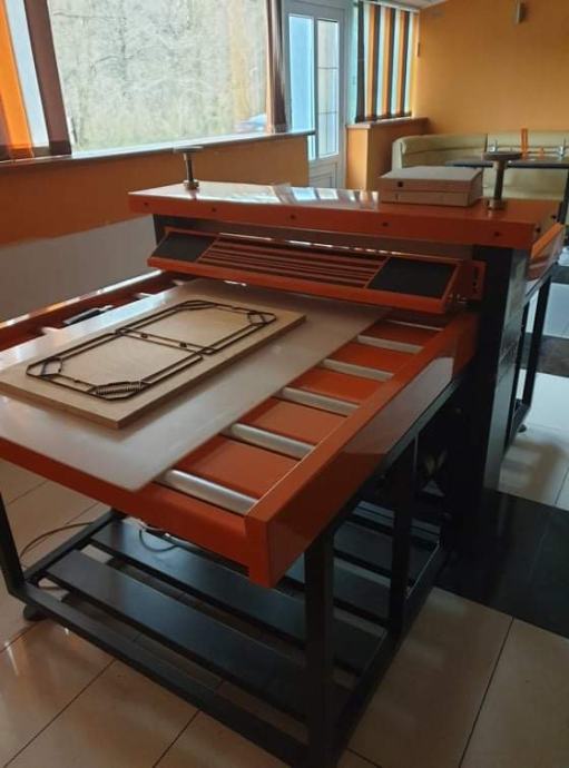 Masina za izradu kutija za pizzu sa nozevima + stol za sitotisak.