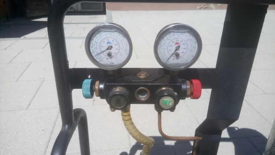 Prodajem menzuru za freon sa grupom glicerinskih manometara i kućištem na kotaćima. Bez vakuum pumpe.