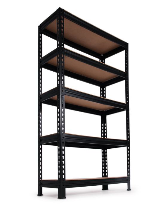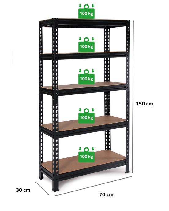 Metalna polica Karl crna, dimenzije cca 70 x 30 x 150 (H) cm, 5 polica, pojedinačna visina - svaka se može utovariti do maksimalno 100 kg