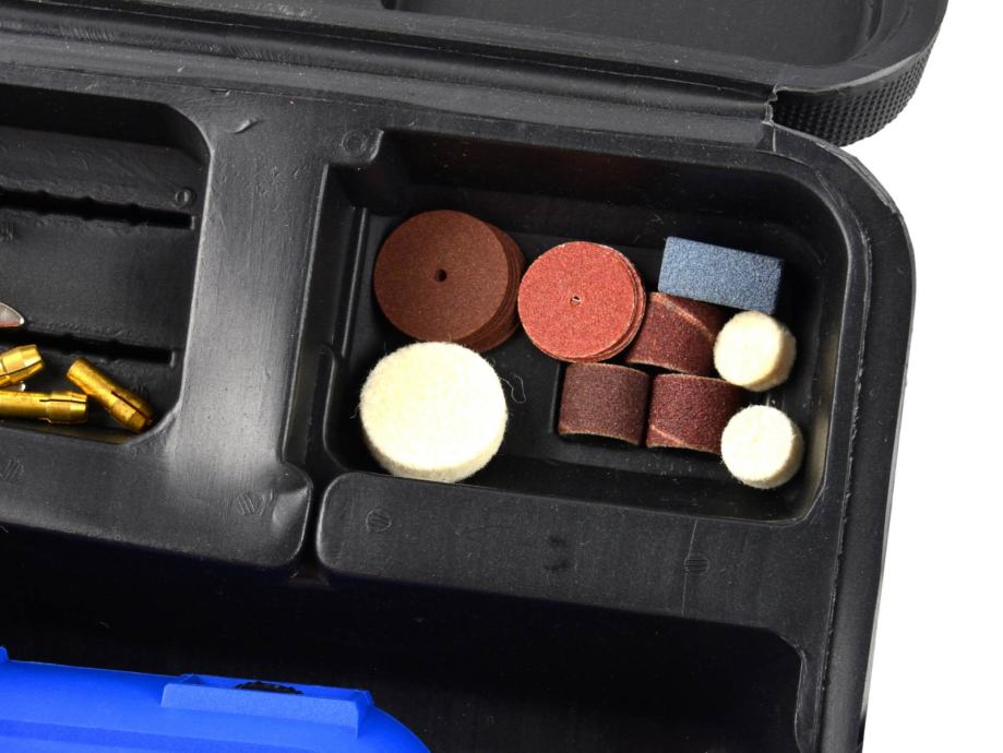 Multifunkcionalna brusilica s skupom dodataka 40 PCS. Uređaj je opremljen električnim motorom od 170 W s glatkom kontrolom brzine u rasponu od 15.000-35 000 o / min.