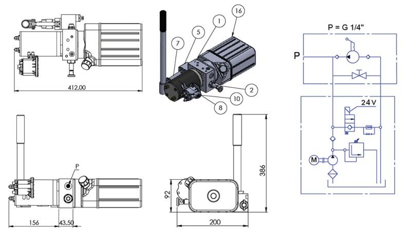 13873 - MINI HIDRAULIČNI AGREGAT 24V DC - 0,8kW = 0,5cc - 1,5 lit - jednosmjerna montaža (PVC) s ručnom pumpom