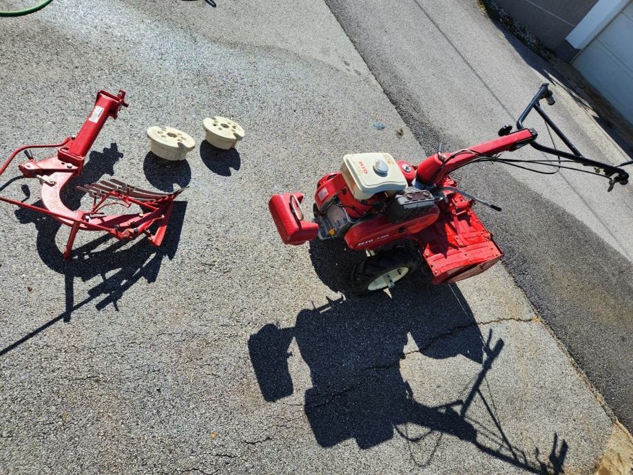 FREZA MIO F620, kopačica, jako malo korištena u plasteniku, svega 20-tak radnih sati, očuvana i potpuno ispravna - kao nova, s priključenom vučnom frezom, plug i utezi - komplet