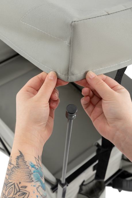 Okvir presvučen navlakom, X-utege za veću stabilnost, zaštita od vremenskih uvjeta, parkirne kočnice