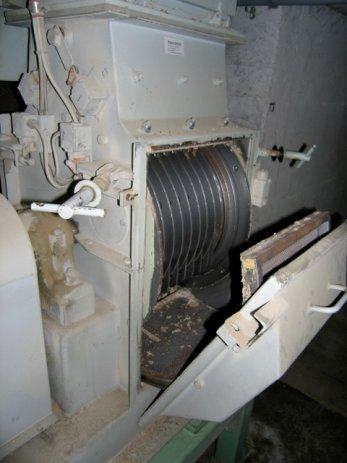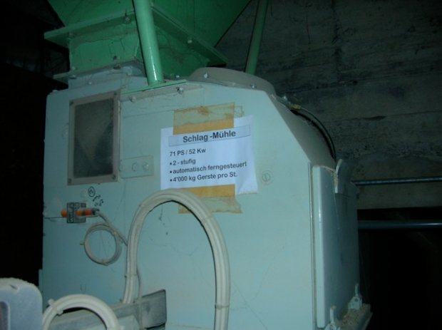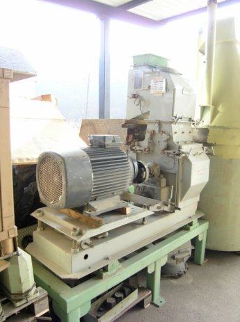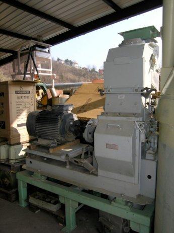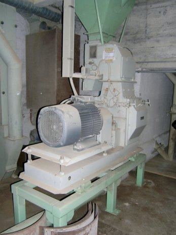 Mlin za mljevenje sječke u piljevinu sa motorom 72 KS - 52 kW, proizvodnje BUHLER Švicarska. Na ulazu snažan magnet za odvajanje fero primjesa. Kapacitet do 1500 kg/h na situ 8 mm. U slučaju mljevenja ječma za stočnu hranu kapacitet je 5 t/h. Polovno, sa garancijom. Uključivo postolje za smještaj motora i čekičara sa magnetom. Težina 550 kg.