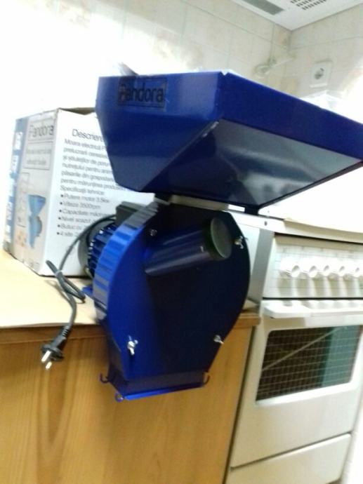 Prodam farmer mlin za žito,za sve vrste žitarica, specifikacije na slikama.Široko i dugo korito za nasipavanje žita.Motor može biti jednofazni ,različite jačine motora,od 1,1 do 2,5 ili 3,5 kbt.sa cca 3500 okr.direkt na osovinu 5 -20 zubčastih bata na križu 4 puta 5 je 20 nazubljenih noževa obostrano.kod najjače varijante.Kapacitet od 50 do 340 kg na sat. Cijena (bez drvene kutije ) Svi kompleti su sa priborom i po2- 4 sita.Cijena 148 e za 1,1 kv,zatim 2,5 kbt.je 198 e,a najjači motor 3,5 kbr.za 350 e.Boja su plava,crvena ili kombinacijasa sa sivom,ili različite varijante veličine kutije za nasipavanje žita.Mlin PANDORA sa prve slike je 330 e.Motor ima još em.zaštitu i kočnice..Moguča dostava poštom Drvena kutija je extra -posebno,cijena po dogovor,u.a može se staviti i na neki stol.,tiho radi i ne vibrira. Prilog kod svakog modela različita oka sita u kompletu.