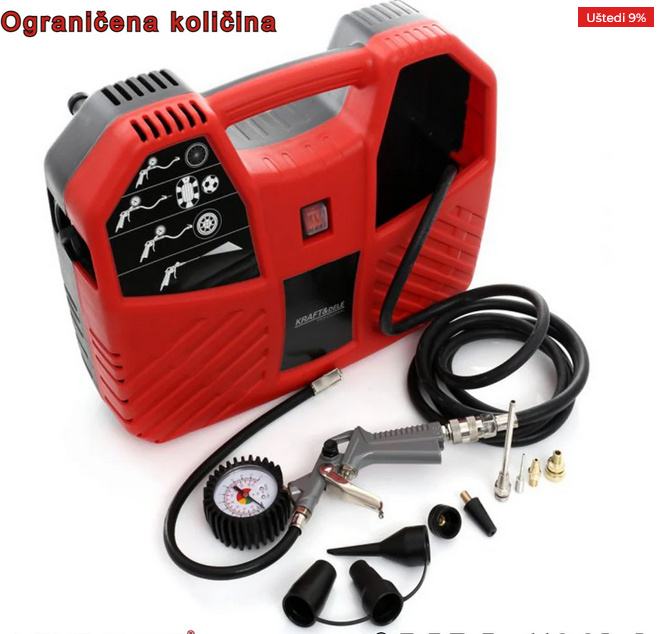 Mobilni bezuljni kompresor 1100W -8BAR+ 9 dodataka