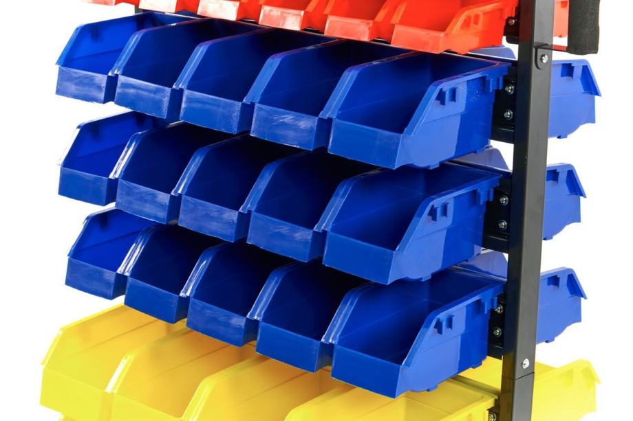 ovaj sustav za pohranu s 90 kutija nije samo vrlo praktičan, već je i vrlo jednostavan za pregled i odžavanje urednog radnog mjesta.jednostavno možete uzeti spremnik iz sustava za pohranu i ponijeti ga sa sobom na svoje radno mjesto, ili još bolje, mobilni stalak možete u cijelosti odvesti na svoje radno mjesto! ovaj je sustav idealan za radionice ili garažezbog ležajnih kotača i robusne konstrukcije, sigurni ste da ćete uživati u ovom sustavu za pohranu. mobilni sustav za pohranu ima 90 spremnika u različitim veličinama. 90 kutjica podijeljeno je u 36 malih kutijica veličine 6,5 x 11 x 5 cm, 30 srednjih kutijica 9,5 x 16 x 9,5 cm i 24 velike kutijica dimenzija 12 x 22 x 11,5 cm.kutijice s prednje strane imaju ravnu površinu za osnačavanje, za lijepljenje naljepnice kako biste točno znali što je u ladicama. To djeluje učinkovito i također je vrlo jasno. nosač za odlaganje ima kotače i dvije ručke za pomicanje kolicadrška je okružena mekom pjenom tako da se osjeća ugodno kad se pomiče stalak za odlaganjeispod spremnika nalazi se veliki pretinac za odlaganje u koji možete smjestiti veće alate ili obratkestalak za odlaganje s kantama isporučuje se bez alata.Tehnički opis: ukupne dimenzije 67 x 52 x 133 cmdimenzije crvenih kanti 9,5 x 16 x 9,5 cmdimenzije plavih kanti 9,5 x 16 x 9,5 cmdimenzije žutih kanti 12 x 22 x 11,5 cmdimenzije kotača 75 x 20 mm]]>