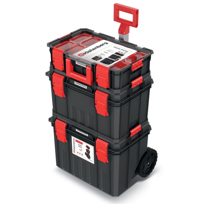 Savršen je za pohranjivanje i organizaciju raznoraznih alata, pribora, vijaka, žica...\nModularna kute za alat na kotačima su lagane i praktične. Ovaj mobilni set na kotačima razlikuje se od ostatka Kistenberg proizvoda. Namijenjene su skladištenju i transportu raznoraznih pribora i alata, to im omogućuju kotači od protektiranog elastomera i savršena rebrasta struktura koja osigurava visoku otpornost na ikakva mehanička oštećenja. Dizajnirane su na način da imaju širok raspon mogućih funkcija.