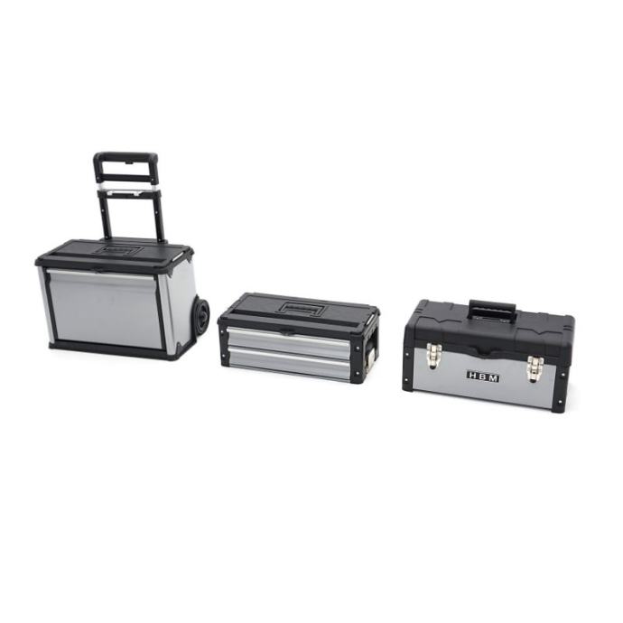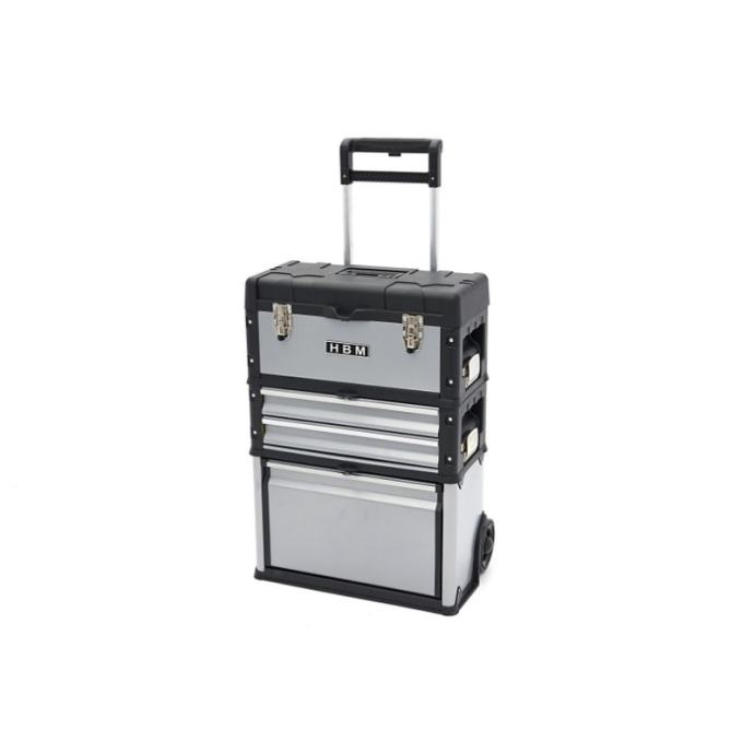 ovaj modularni set mobilnih kutija za alat iz HBM-a neizostavan je dodatak svakoj majstorskoj radioniciova kolica vam daju mogućnost organiziranja malih i malo većih alata i dijelovatri kutije se mogu ukloniti, tako da imate veliku fleksibilnost u pogledu rasporedana ovaj način donju kutiju možete koristiti samo odvojeno ili je kombinirati s jednom od dvije manje kutijeosim toga, dva čvrsta kotača na dnu kolica znatno olakšavaju manevriranje i transportTehnički opis: materijal plastika i metalukupne dimenzije 72 x 52 x 23 cm (VxŠxD)maksimalna nosivost 75 kgpromjer kotača 125 mmdimenzije donje kutije 29 x 52 x 23 cm (VxŠxD)dimenzije srednje kutije 15 x 52 x 23 cm (VxŠxD)dimenzije gornje kutije 18 x 52 x 23 cm (VxŠxD)visina unutarnje donje kutije 27 cmvisina unutarnje srednje kutije po ladici 6 cmvisina unutarnje gornje kutije 16 cm]]>