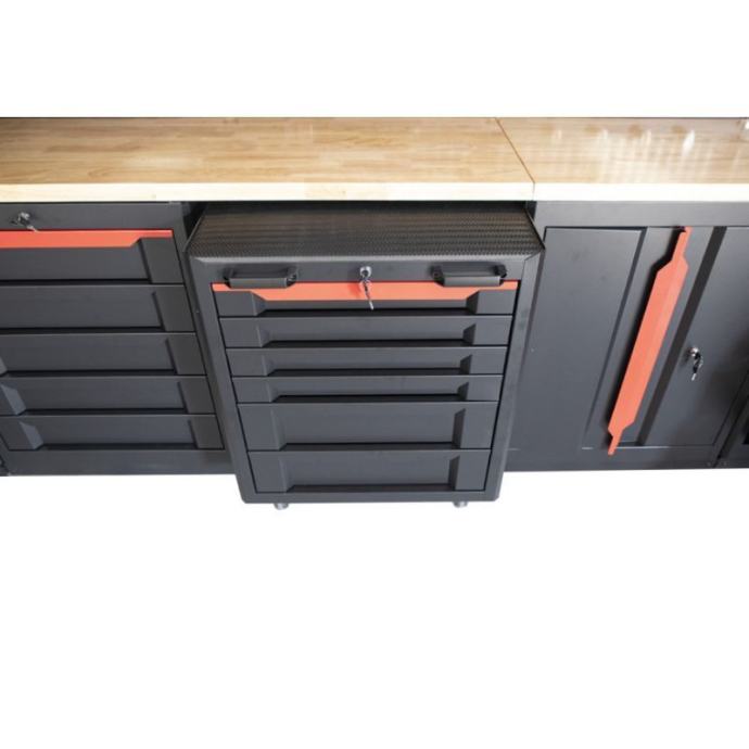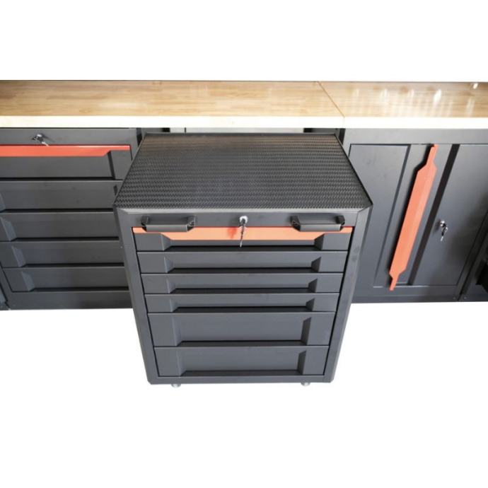 S mogućnošću pojedinačnog zaključavanja svih ormara, uključujući i rezervni ključ, osiguravamo sigurnost vašeg alata. Ormar za alat sa 6 ladica s kotačima dodaje mobilnost vašem radnom prostoru. Nakon upotrebe, ormarić jednostavno gurnete ispod radne ploče. Uz pjenaste umetke i gumenu podlogu, sve ostaje uredno organizirano i zaštićeno.
