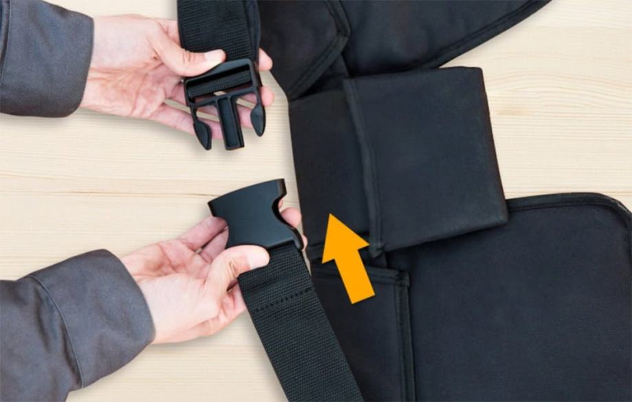Opremljen je s 14 džepova i 2 držača čekića. Također ima podesivi pojas. Omogućuje udoban prijevoz i skladištenje alata tijekom rada.
