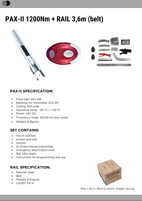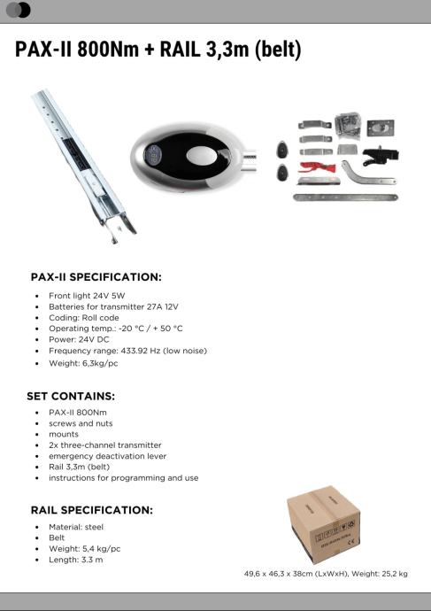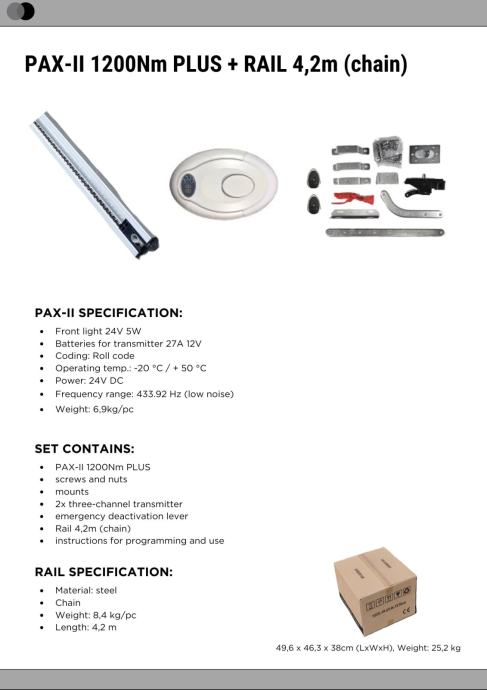 CIJENA ZA PAX-II 1200Nm PLUS + 4,2m VODILICA MOTORA (LANAC) 380,00EUR (PDV uključen u cijenu)