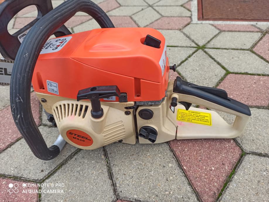 Motorka nikad korištena STEEL M440 (Austrija) snaga motora 3.0 PS, 7500 o/min, težina 6,3 kg, vodilica 50 cm, metalno kućište... Plaćena 1200 kn pa stoji par godina . Ne koristim ju pa...