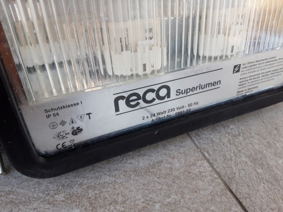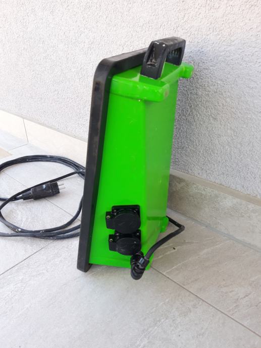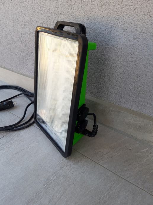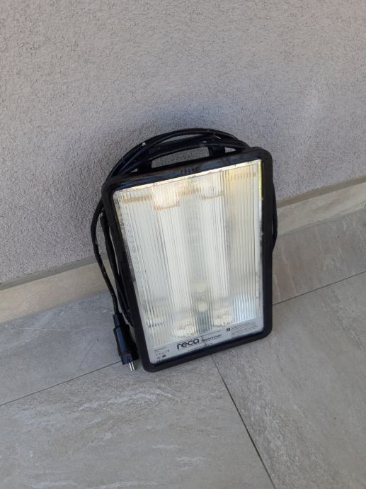 Profesionalni Njemački RECA podni reflektor, ima kabel 6 m, na sebi ima 2 uticnice, Njemačke je proizvodnje. Odličan je za radionu ili gradilište kao i za drugu namjenu. Potpuno je zaštićen od kiše i vlage, IP zaštita 54. Vrlo je lako prenosiv i stabilan. Korišten je ali 100 % ispravan. Dimazije 37 x 25 cm. U dućanu ovakav novi košta oko 200 eura. Prodajem ga za 60 eura. Mob 091 444 4281