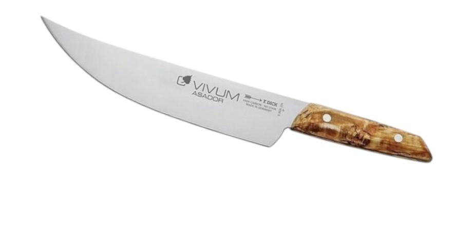 Stručnjak za roštilj – Roštilj nož ASADOR idealan je za rezanje većih komada mesa i ribe, a savršen je i kao „nož za prsa“ za prostor za roštiljanje. Duga, zakrivljena oštrica omogućuje izvučeni rez bez potrebe za pauzom. Plemenita drška od drveta breze s vrlo posebnim drvnim zrncima čini svaku VIVUM ručku jedinstvenom. Novi oblici ručki ne samo da izgledaju impresivno, već i udobno leže u ruci. Oštrica očvrsnuta u ledu s tvrdoćom od 58 HRC osigurava dugu izdržljivost rezanja. Noževi su stoga iznimno oštri i spremni za korištenje u vašoj kuhinji i za roštilje diljem svijeta.