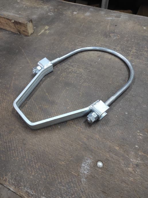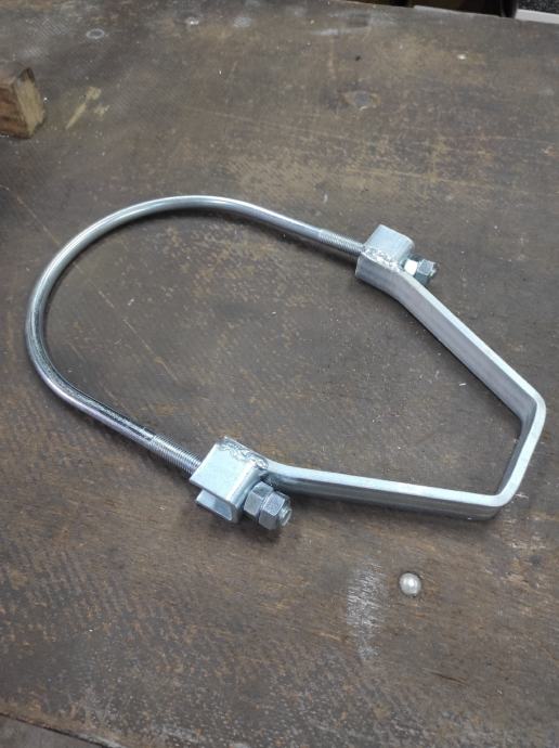 Prodajem obujmice za betonsku nogaru, galvanizirane, vijak rađen od 15.31 svjetlo vučenog zeljeza, plosnati komad od standard HV 30x8 mm 235J flaha. Obujmica služi za pričvršćivanje drvenih stupova (strujnih, rasvjetnih ili telekomunikacijskih) sa betonskim nogarama. Na slikama je jednostruka, imam i dvostruke sa 2 vijka od 500 mm i 2 plosnata komada. U cijeni su i 4 matice, kod dvostrukih 8 matica.