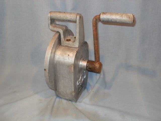 TO JE U STVARI BILA RUČNA VATROGASNA SIRENA SAMO NEMA PREDNJEG DIJELA KOJI "ZAVIJA". VEOMA JE VELIK ODNOS OKRETAJA RUČKE I IZLAZNE OSOVINE I DA BI SE MOGAO ISKORISTITI ZA PRAVLJENJE VJETRENJAČE ZA STRUJU ILI SLIČNO. NIKAKVO SLANJE.